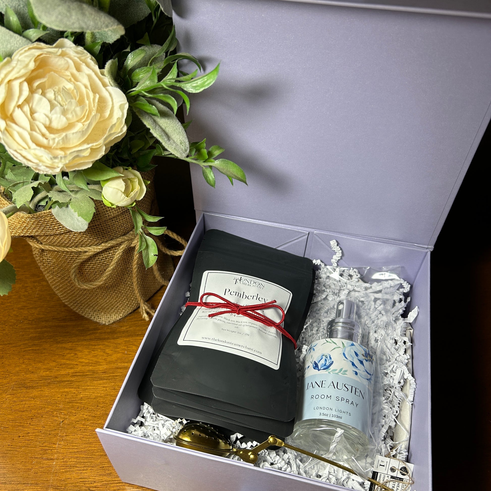 Date un capricho (o date un capricho con un amante del té o un ratón de biblioteca) con nuestro lujoso set de regalo Jane Austen, completo con cuatro tés inspirados en Austen especialmente seleccionados, un infusor de pinza con forma de corazón dorado y un refrescante aerosol para ambientes Jane Austen de London Lights (pista: una vivaz mezcla de cítricos que ilumina la habitación con la elegancia eterna de Austen).
