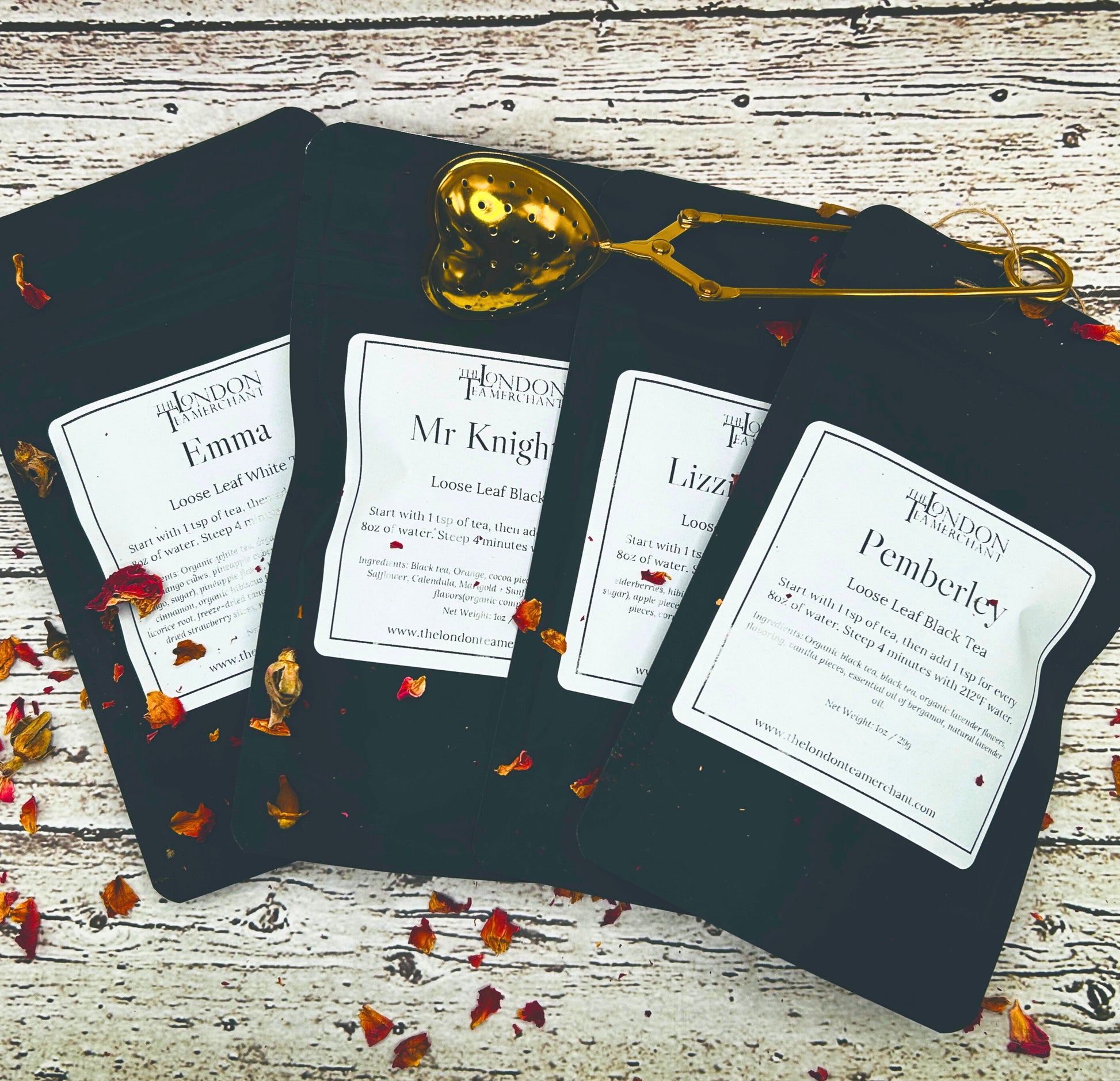 ¡Disfruta de una divertida experiencia con nuestro muestrario de té Jane Austen! Con cuatro tés de 28 ml (1 oz) inspirados en Austen y un infusor con forma de corazón, te transportarás al mundo de los queridos personajes mientras saboreas tu mezcla favorita. El regalo perfecto para cualquier amante de la lectura y el té.