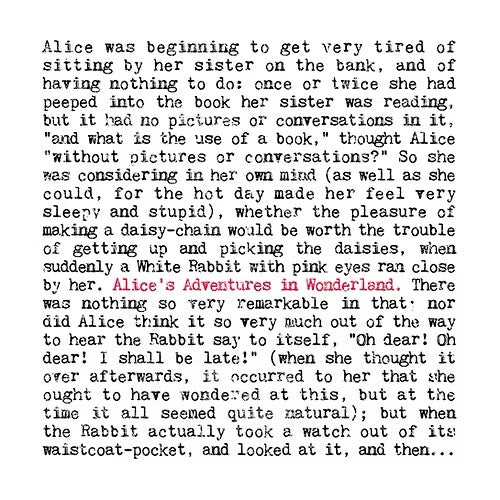 Hello there, book lover! Searching for a unique way to wish someone happy birthday? Our Alice's Adventures in Wonderland greeting card is just the ticket. Featuring the beginning of this iconic children's novel - in a distressed typewriter-style font - this greeting card is sure to win the hearts of any Lewis Carroll fan.
