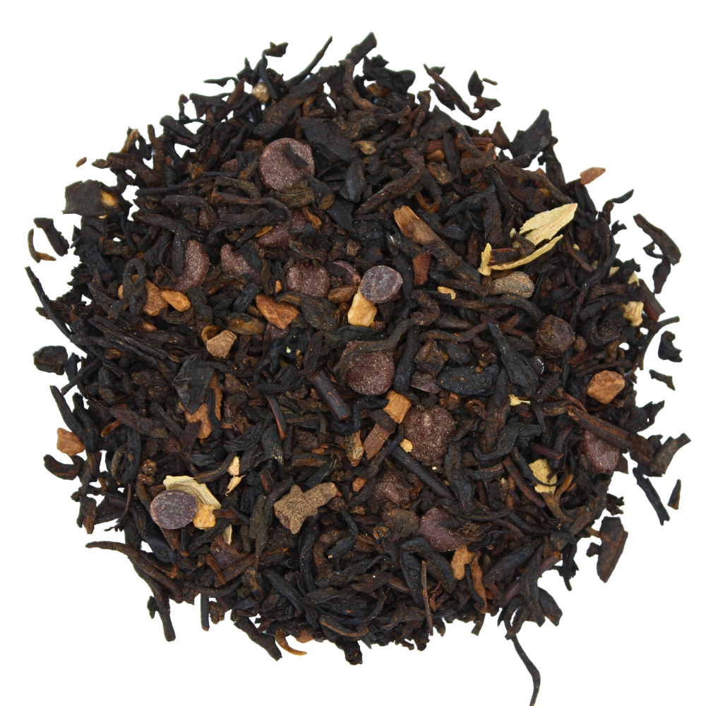 Tis the season for chocolate and masala chai, and we asked what would happen if we put the two together? Pu’er tea provides a malty base for the flavors to build on, and real chocolate chips melt during the steeping process, lending the tea a chocolatey sweet goodness. Spices such as ginger and cardamom contrast with that sweetness, creating a wonderful wintertime drink.