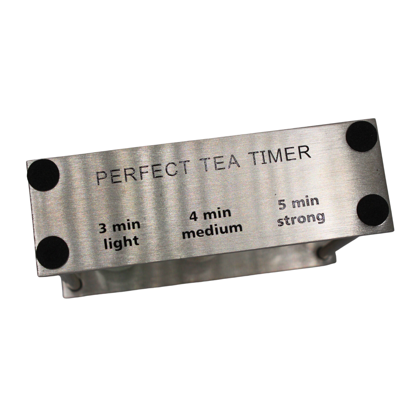 The Hourglass Tea Timer is the perfect tea accessory for any tea aficionado! This hourglass-style timer will have your tea ready in a jiffy. Just turn it over once you start steeping and the sand starts falling. There are timers for 3 minutes, 4 minutes, and 5 minutes.
