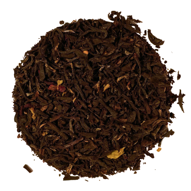 Organic black tea, organic pu’er tea, blood orange rind, essential oil of bergamot.