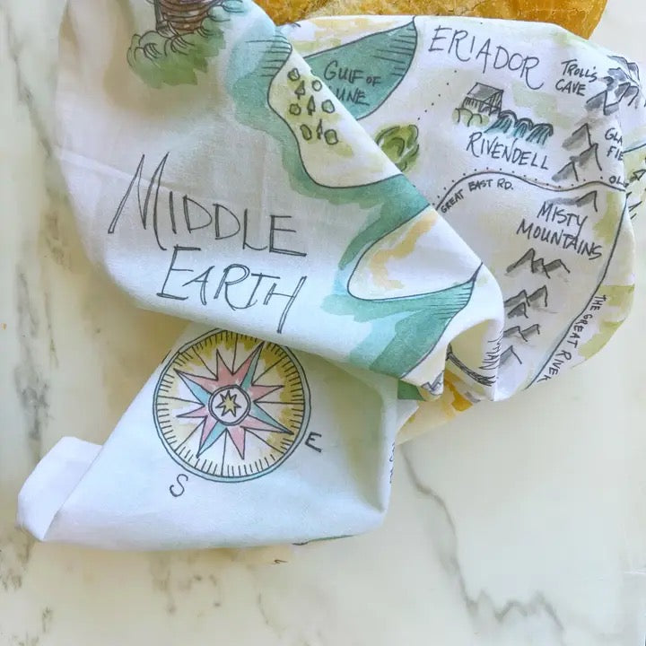 Bring the spirit of Middle Earth into your kitchen with these beautifully illustrated tea towels. Perfect for any Tolkien fan, they add a touch of adventure whether used for drying dishes or framed as wall art. Each towel includes a handy hanging loop in the corner, making it easy to display your love for the legendary world of hobbits, elves, and wizards. A playful and practical gift for every Middle Earth enthusiast!
