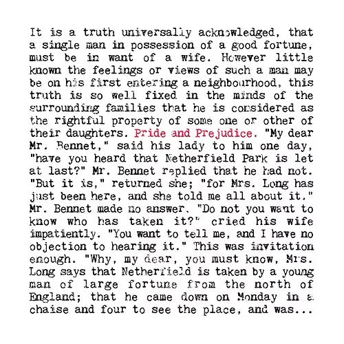 Hello there, book lover! Searching for a unique way to wish someone happy birthday? Our Pride and Prejudice greeting card is just the ticket. Featuring the beginning of this iconic romance novel - in a distressed typewriter-style font - this greeting card is sure to win the hearts of any Jane Austen fan.